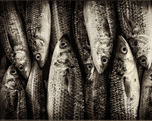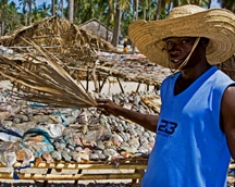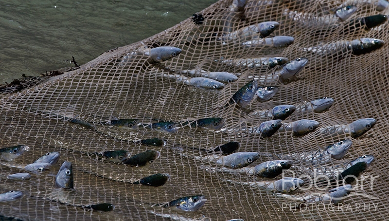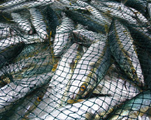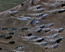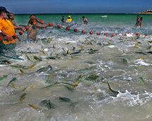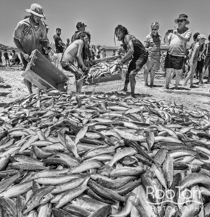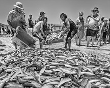 The treknetters haul the catch of harders (mullet) into a pile before moving them off the beach.