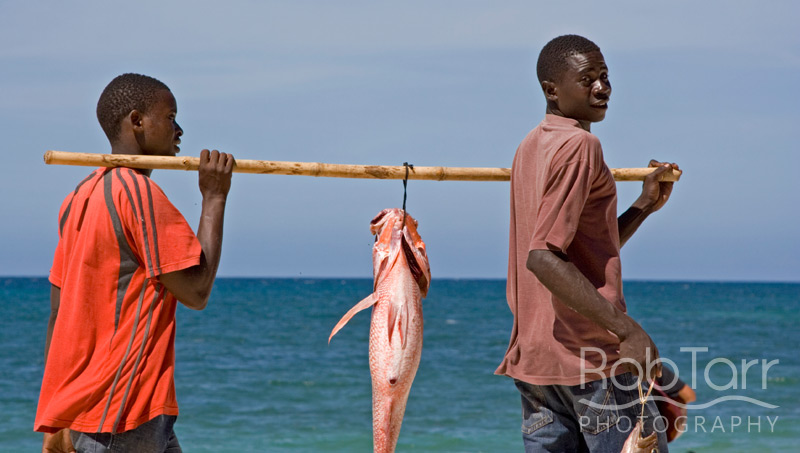 Walking along a beach on Zanzibar turned up these two artisanal fishers hoping for some luck. They landed a handful of small fish.